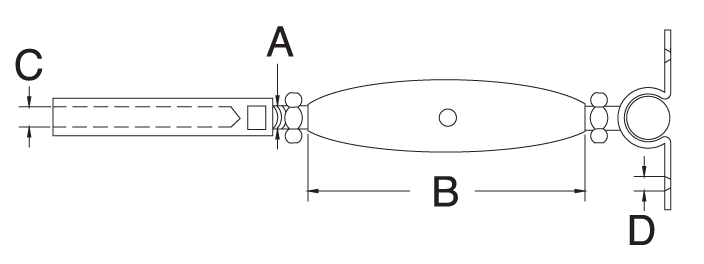 | Part No. | C (Cable Size) | A (Thread) | B | D |