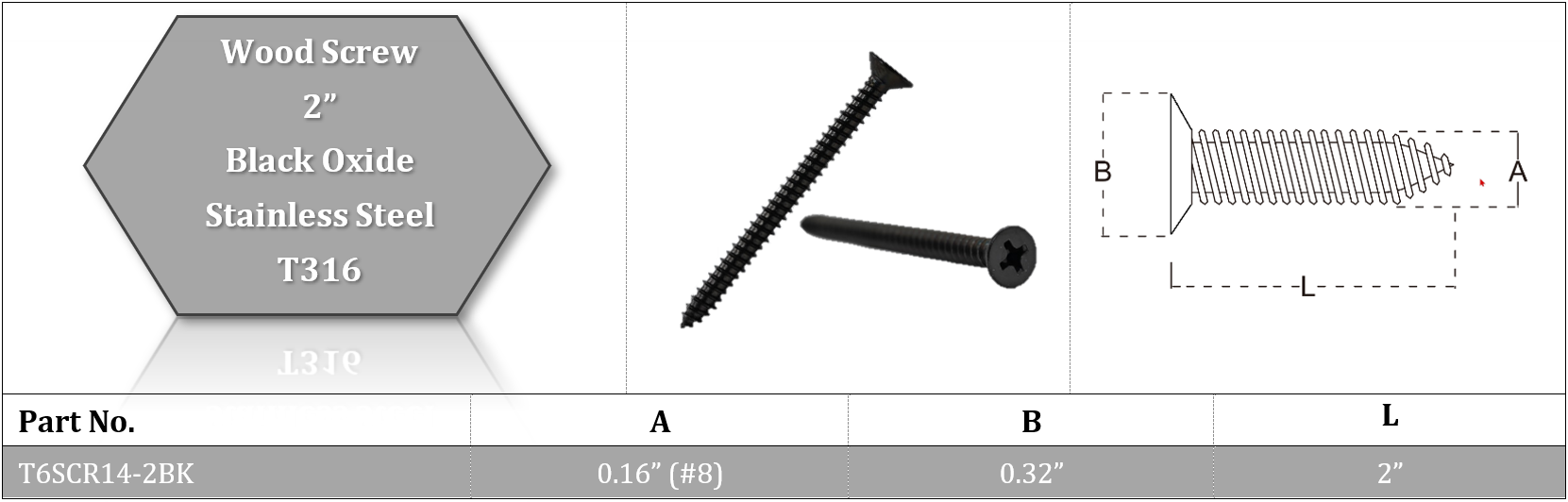 STAINLESS STEEL BLACK OXIDE 2" WOOD SCREWS - T316