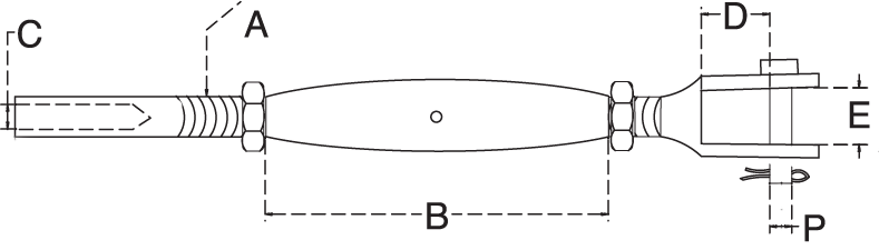 | Part No. | C (Cable Size) | A (Thread) | B | D | E | P |