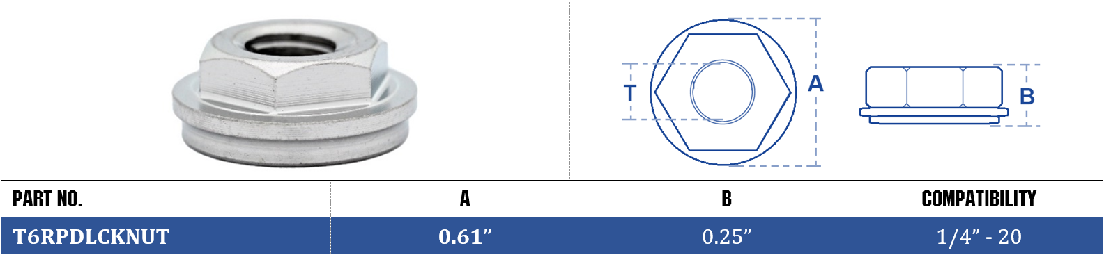 STAINLESS STEEL HEX NUT FOR RAPID LOCK CAP T316 - T6RPDLCNUT - FITS STANDARD STUDS WITH 1/4”-20 THREAD