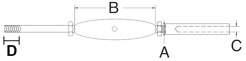 STAINLESS STEEL ROD AND STUD W/PIPE BODY TURNBUCKLE - T316