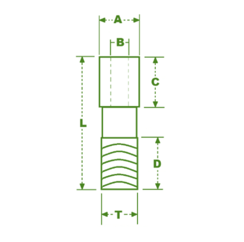 | T6STRSTUD-18S | 5/16” | 1/8” | 11/32” | 31/64” | 5/16”-24 | 1” |